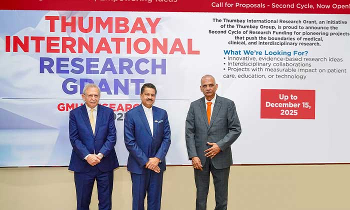 Gulf Medical University (GMU) and Thumbay Group have announced an extension for the submission deadline of the Thumbay International Research Grant 2025/26, now open until December 15, 2025. The decision to extend the deadline offers researchers, academicians, and healthcare innovators across the world more time to refine their proposals for one of the UAE’s most prestigious and impactful research funding programs.